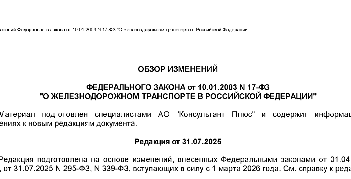 С первого марта вступили в силу изменения Федерального закона № 17 ФЗ от 10.01.2003 г. «О железнодорожном транспорте в Российской федерации»